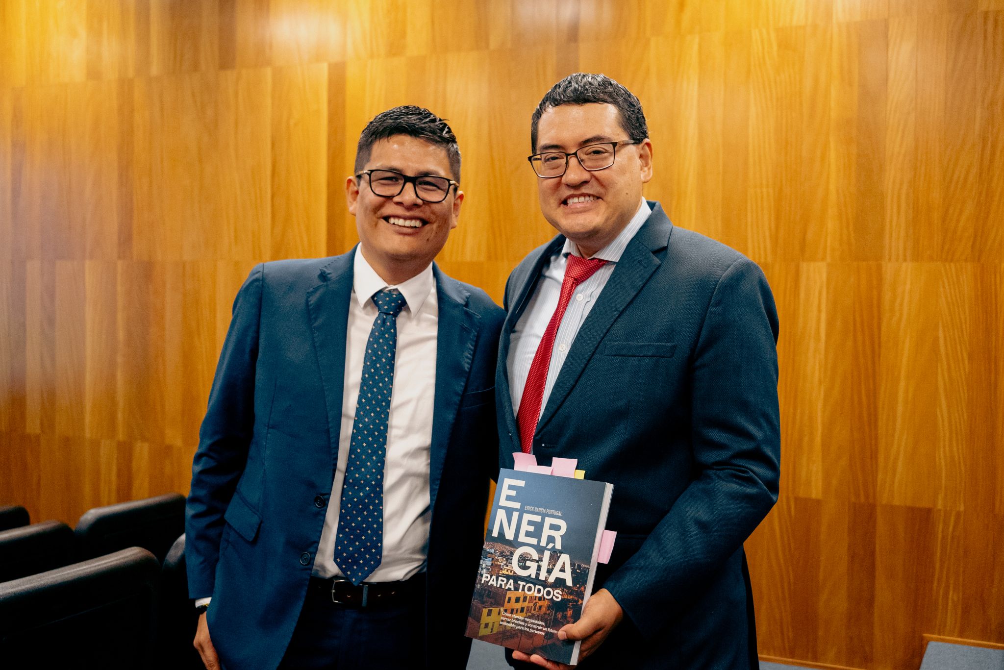 El Dr. Arturo Vásquez junto al Ing. Erick García en la presentación del libro “Energía para todos: Cómo atender necesidades, cerrar brechas y construir un futuro sostenible para los peruanos”.