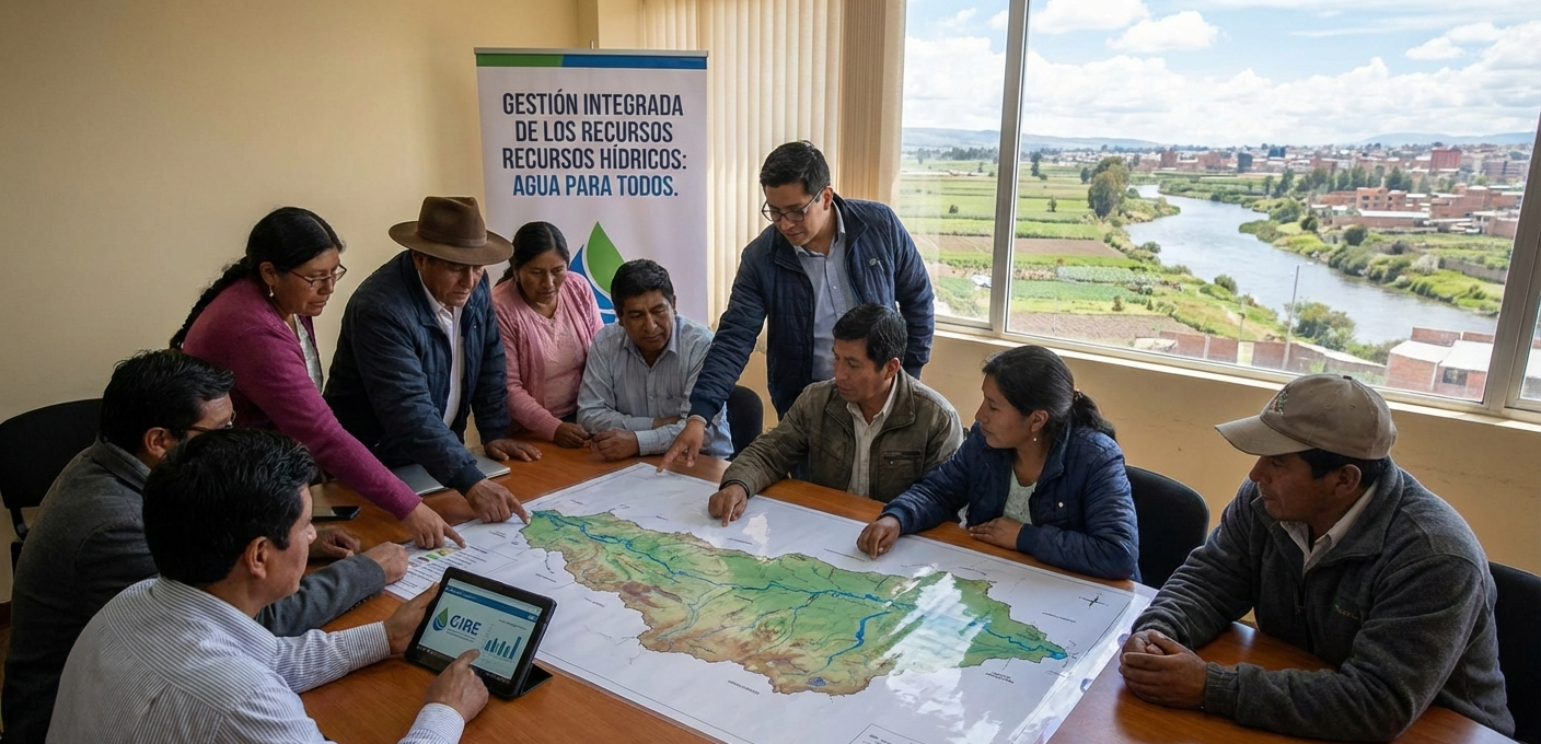La participación inclusiva a escala de cuenca, el cual la interacción entre las comunidades locales y otros actores aporta legitimidad y conocimientos territoriales a la toma de decisiones, resulta fundamental. Asimismo, la innovación tecnológica y las herramientas de análisis de datos facilitan la planificación estratégica del recurso. Elaboración: Dirección de Investigación, EPG GERENS, con asistencia de Google Gemini – Nano Banana.