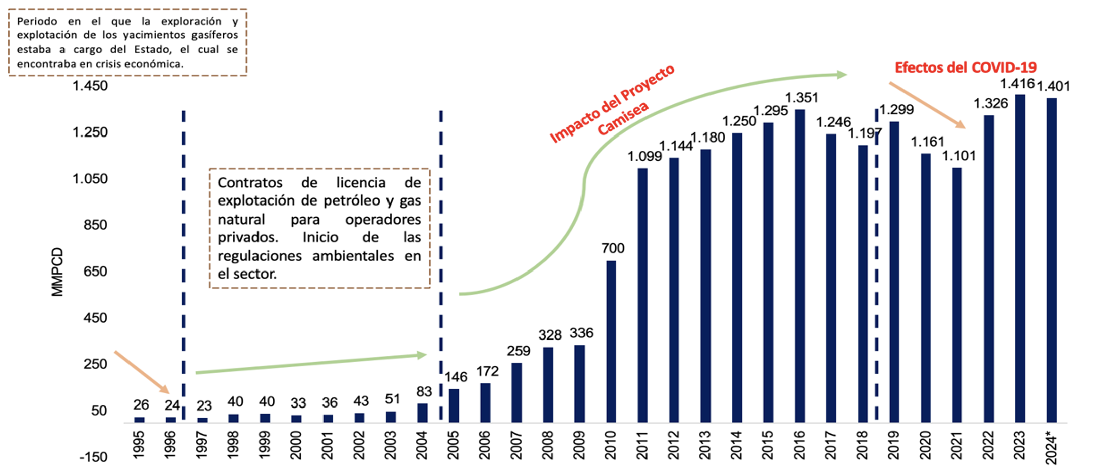 Ilustración 1‑2 – Producción de gas natural de 1995 al 2024