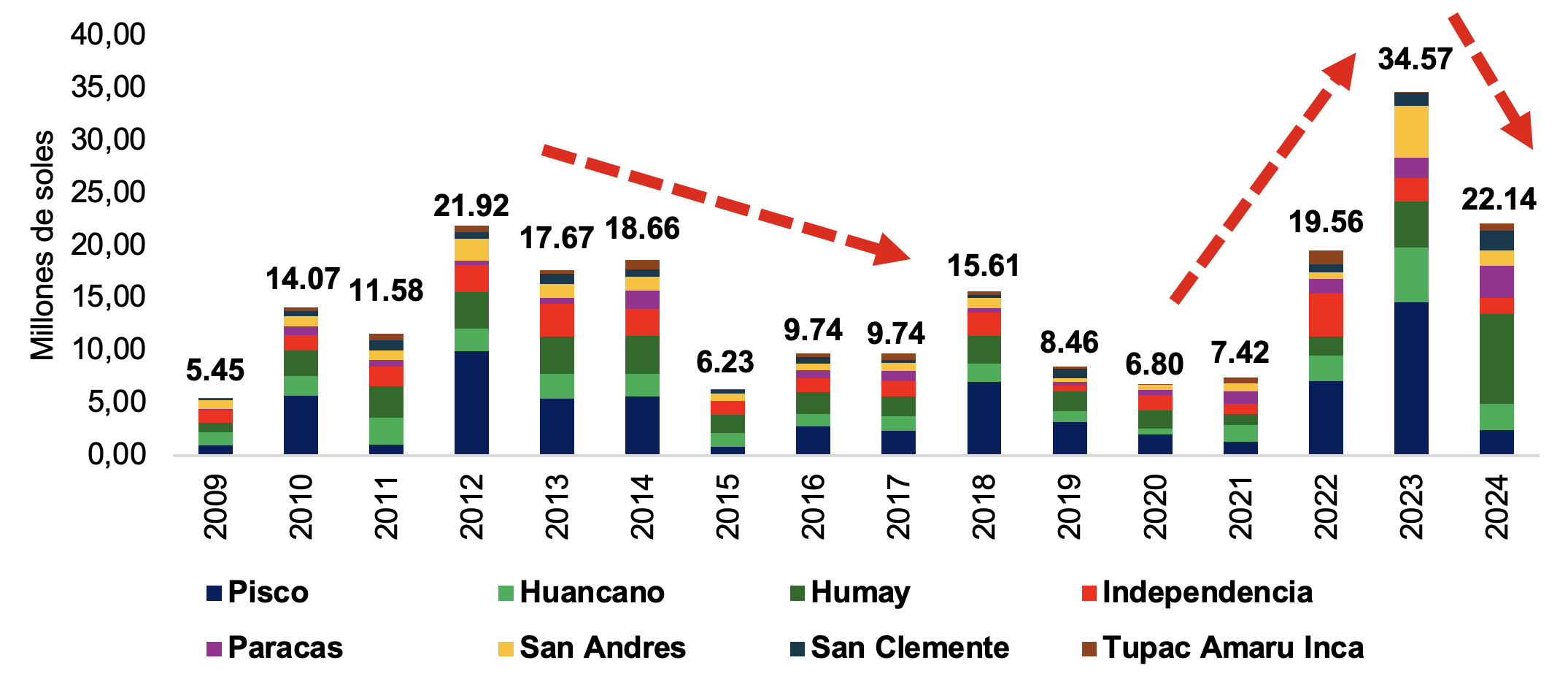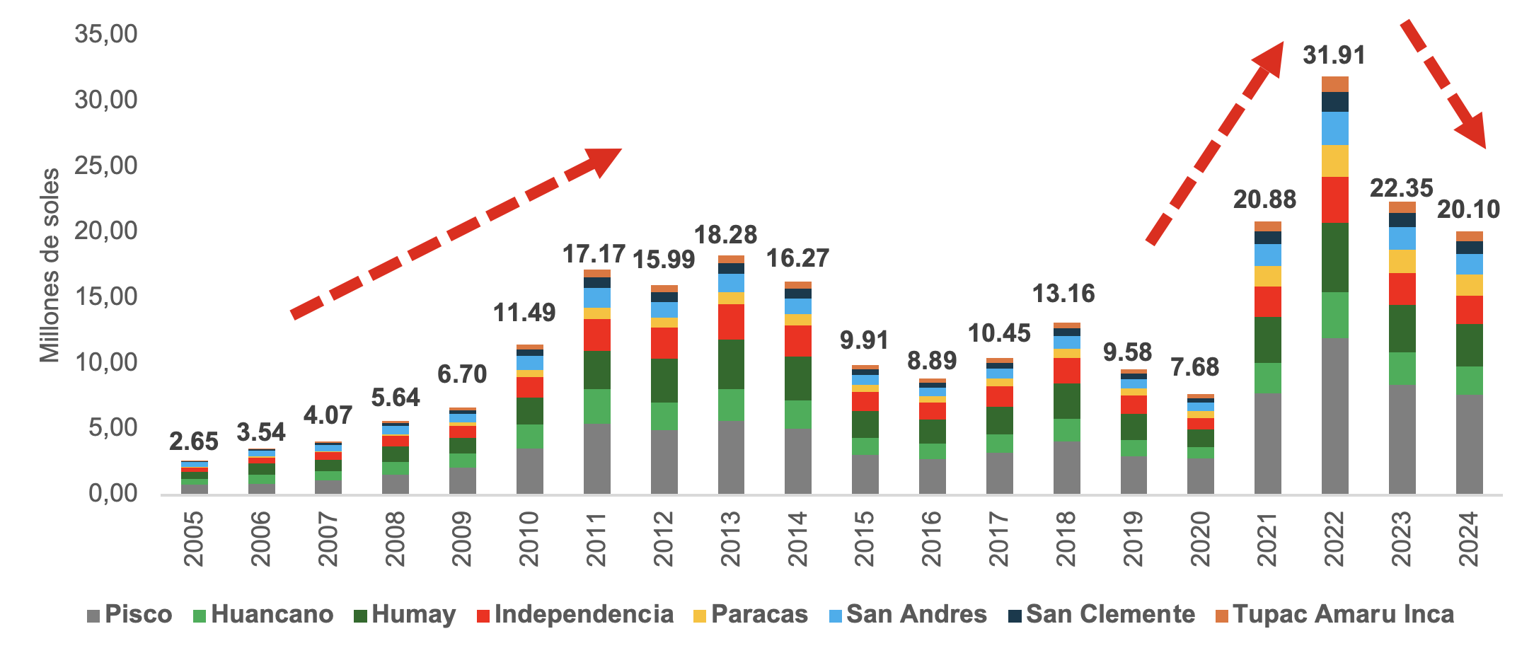 Ilustración 3‑4 Transferencias del FOCAM a la región Pisco, 2005 – 2024