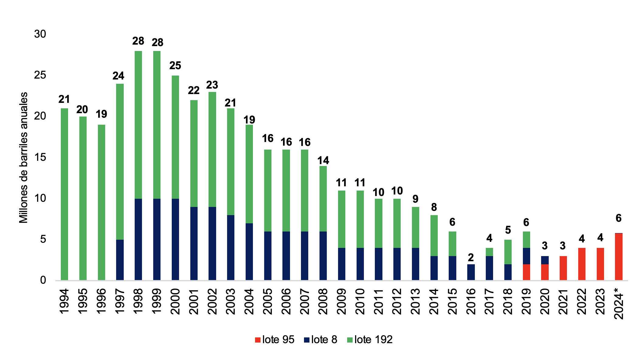 Ilustración 1 – Producción de Petróleo de Loreto entre 1993 y 2024